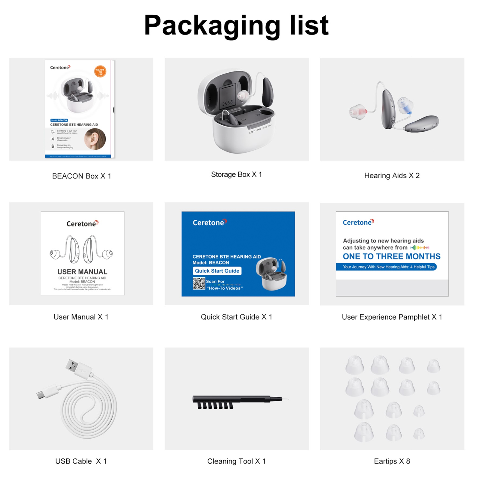 Enjoy clinically proven, audiologist-quality hearing aid customization with the Ceretone Beacon Self-Fitting OTC Hearing Aids. Simply put in these comfortable and discreet receiver-in-canal hearing aids and take Ceretone’s in-app hearing test, which will recommend settings tailored to your unique hearing profile. The app also allows you to adjust the volume, sound quality, and background noise to your preference.