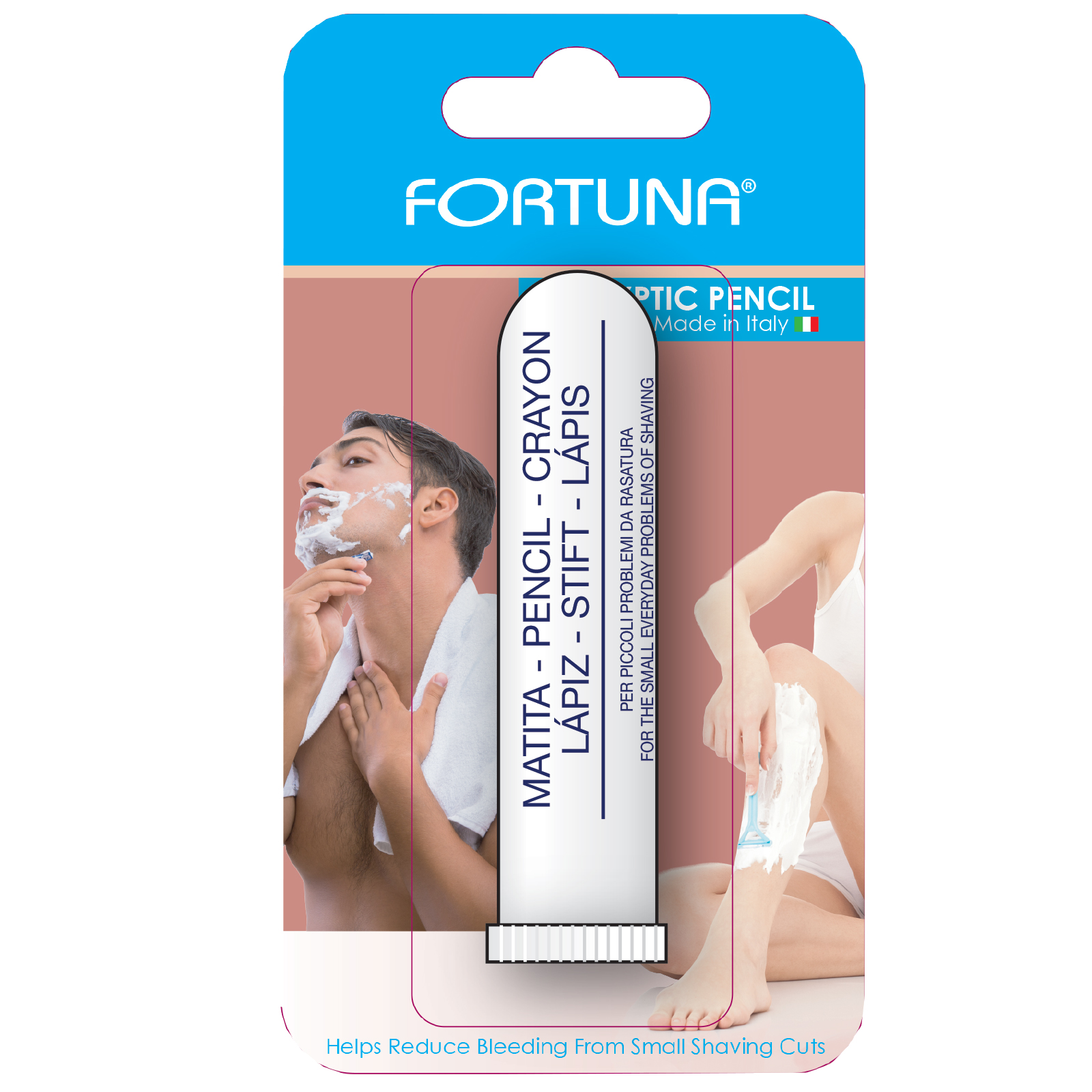 The Fortuna Styptic Pencil helps reduce bleeding arising from small shaving cuts. The aluminium and potassium properties of the pencil will help stop the bleeding by causing blood vesselsto contract at the site of the wound. The styptic pencil can be used by both men and women on the face or legs.