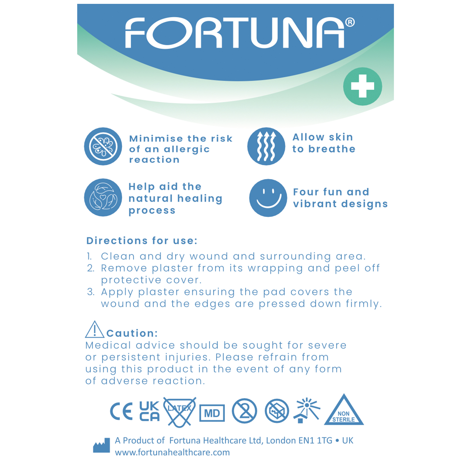 Fortuna Kids Plasters provide a comfortable and practical means of maintaining wound cleanliness, ventilation, and protection through their dependable and long-lasting adhesive.