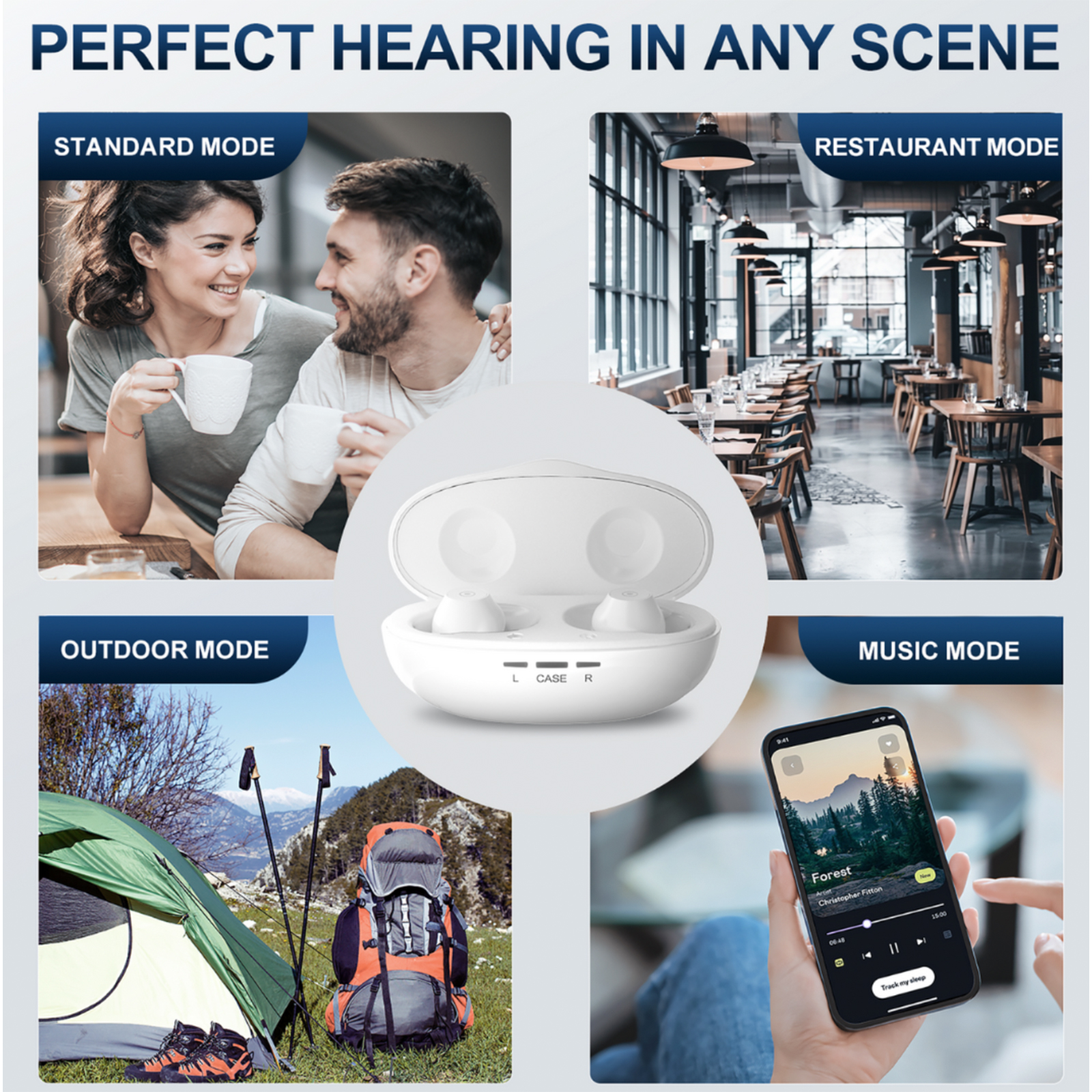 With four distinct hearing modes—Standard, Restaurant, Outdoor, and Music—you can seamlessly adapt to different environments for optimal sound clarity. The long-lasting rechargeable battery offers up to 100 hours of total usage time with the included charging case, ensuring you stay connected and confident throughout the day. Lightweight and easy to use, the Fusion is perfect for those seeking high-quality, reliable hearing aids.