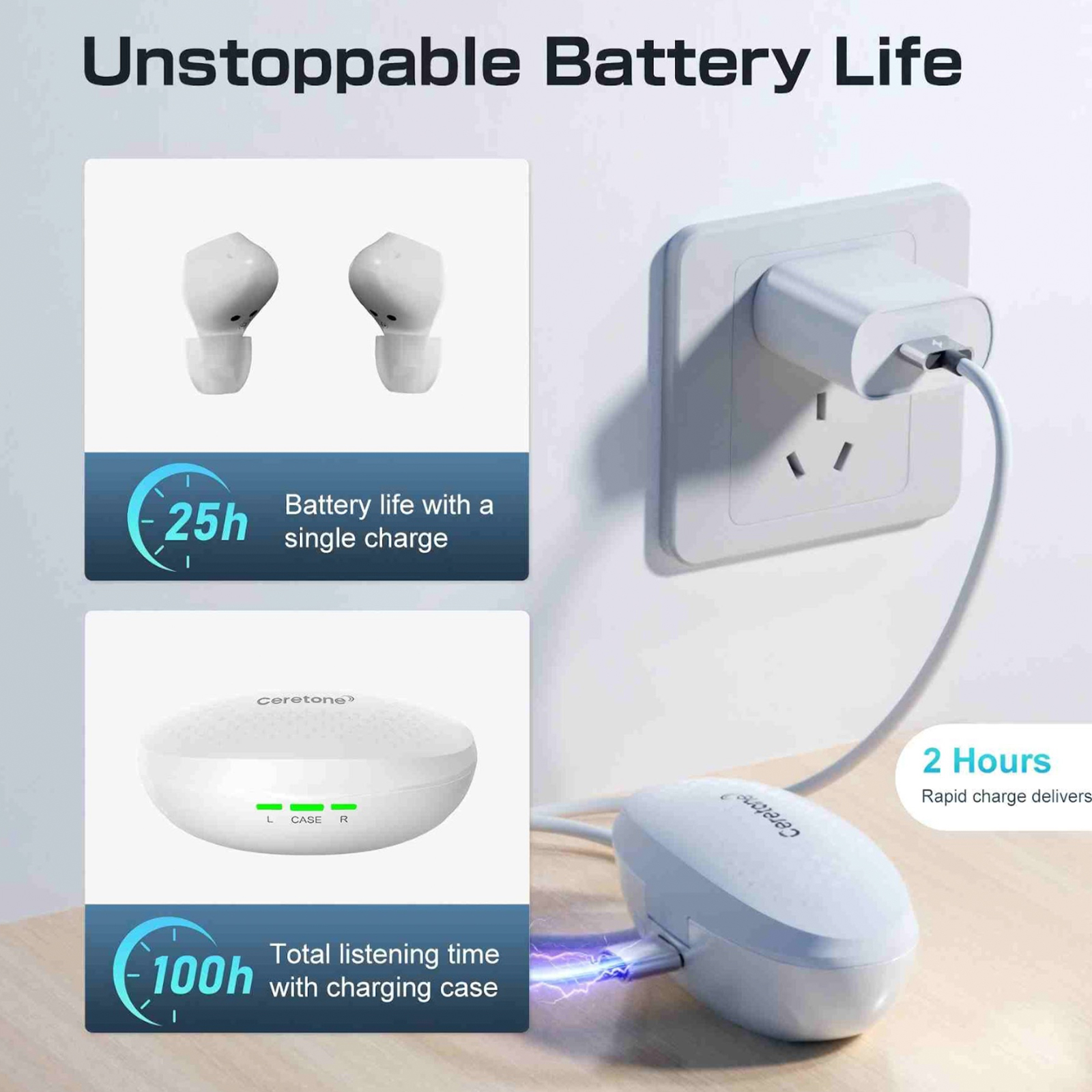 The Ceretone Fusion Rechargeable OTC Hearing Aids provide CE-MDR registered, over-the-counter hearing support with exceptional audio quality, making every conversation crystal clear. Designed for convenience, these hearing aids feature advanced noise reduction technology that minimizes background noise, enhancing your hearing experience in any setting.